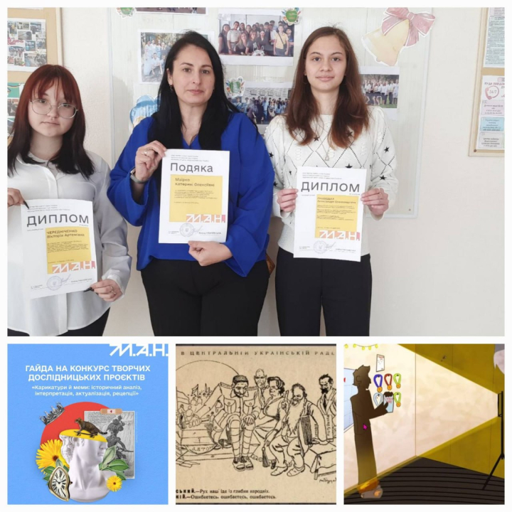 Те, що мистецтво є важливим науковим джерелом, довели учениці ліцею №3, які успішно представили свої роботи на Всеукраїнському конкурсі творчих дослідницьких проєктів «Карикатури й меми: історичний аналіз, інтерпретація, актуалізація, рецепції».