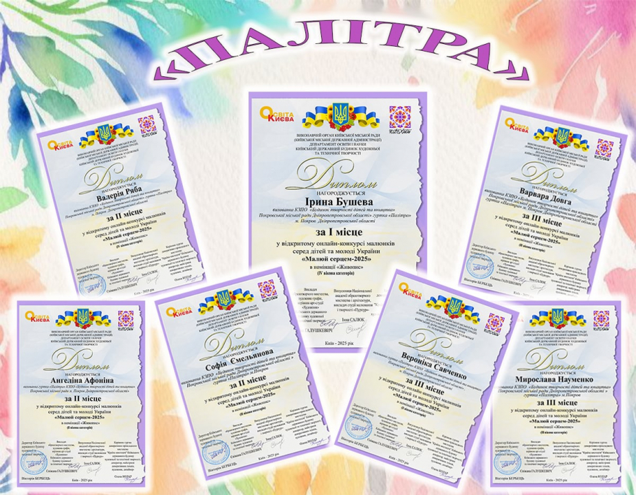 Щирі вітання всім переможцям та їхнім наставникам! Нехай натхнення ніколи не полишає юних художників, а нові досягнення додають віри у власні сили й любові до творчості.