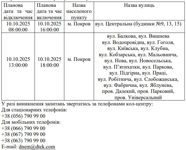 З метою підвищення надійності електропостачання та попередження аварій в електричних мережах АТ «ДТЕК Дніпровські електромережі» 10.10.2025 р проводитимуться профілактичні роботи в межах Покровської міської територіальної громади: