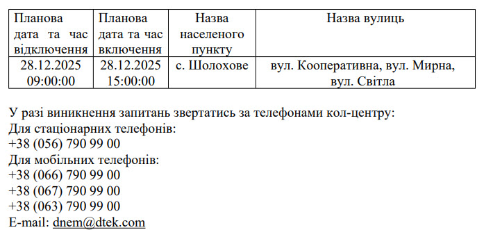 З метою підвищення надійності електропостачання та попередження аварій в електричних мережах АТ «ДТЕК Дніпровські електромережі» 28.12.2025р проводитимуться профілактичні роботи в межах Покровської міської територіальної громади: