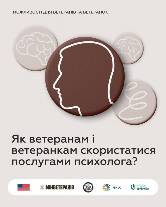 Психологічна підтримка — важлива для ветеранів, ветеранок та їхніх родин. Звернутися за підтримкою фахівців — це прояв сили, турботи про себе та близьких. Ветерани, ветеранки та їхні родини можуть отримати безоплатну психологічну допомогу: у державних клініках через програми НСЗУ, у проєктах та на гарячих лініях громадських організацій та фондів, звернувшись до фахівців із спеціального реєстру, який створили в Міністерстві у справах ветеранів. Аби швидше та