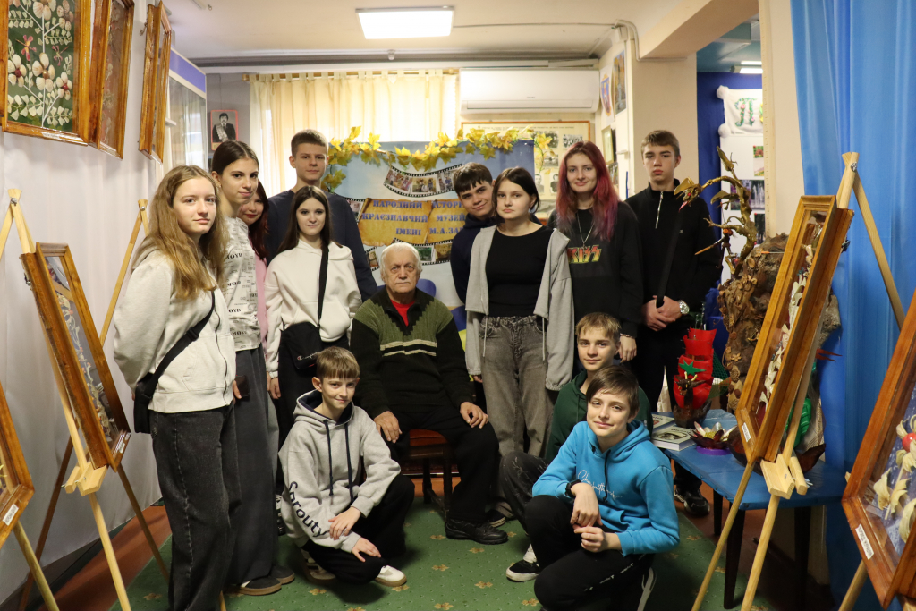 Директор музею Тетяна Подольчак представила автора цих дивовижних робіт — народного майстра і поета із Лошкарівки Віталія Івановича Синьоокого. Його творчість- це унікальне поєднання таланту, праці, фантазії й сили духу. Для митця ця презентація стала особливим моментом спілкування з юними покровчанами — учнями гімназії №4.
