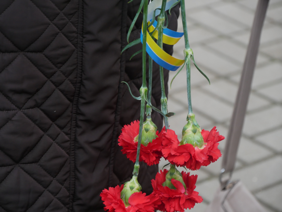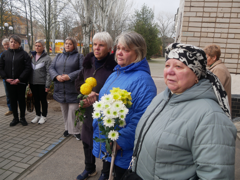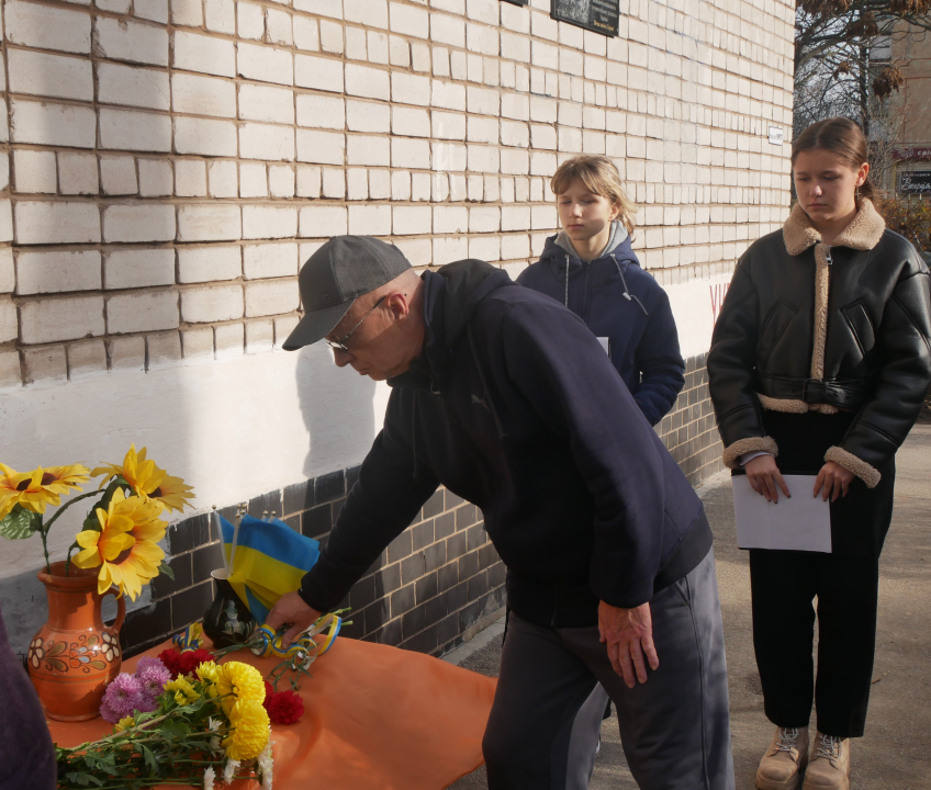 Живі квіти лягли до меморіальної дошки. Присутні схилили голови у хвилині мовчання на знак шани і поваги до Захисника.