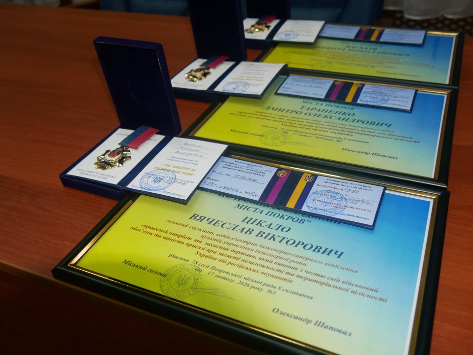 Депутати одноголосно підтримали проєкт рішення про присвоєння звання “Почесний громадянин міста Покров” (посмертно) Миколі Васьківу, Дмитру Тараненку, Вячеславу Цікало.