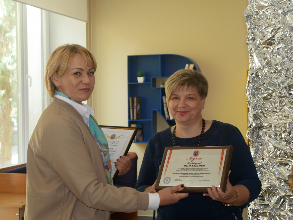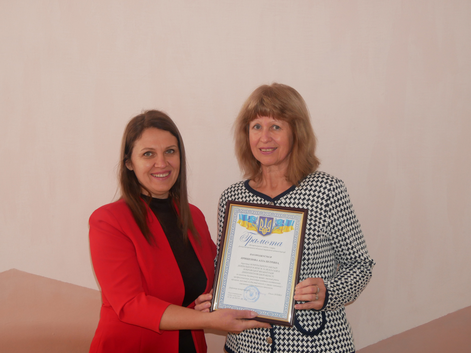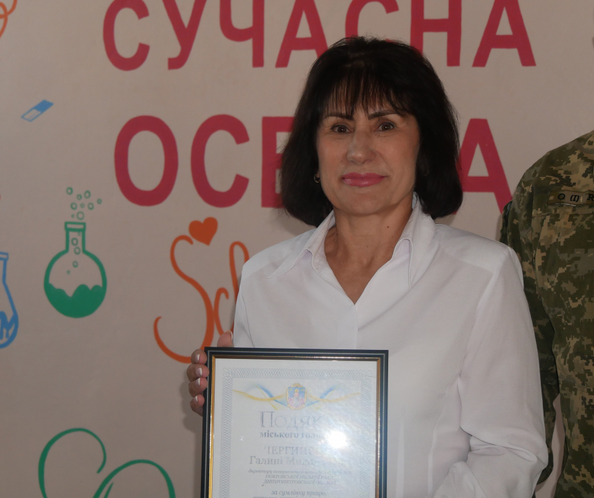 У теплій атмосфері педагоги отримали також почесні грамоти Міністерства освіти і науки України, Департаменту освіти і науки Дніпропетровської обласної державної адміністрації, відзнаки міського управління освіти, які вручила начальник управління Ольга Матвєєва. Це визнання наполегливої праці педагогів, які впроваджують нові підходи до навчання й виховання, залишаючись вірними своєму головному завданню – формуванню особистостей та патріотів рідної землі.