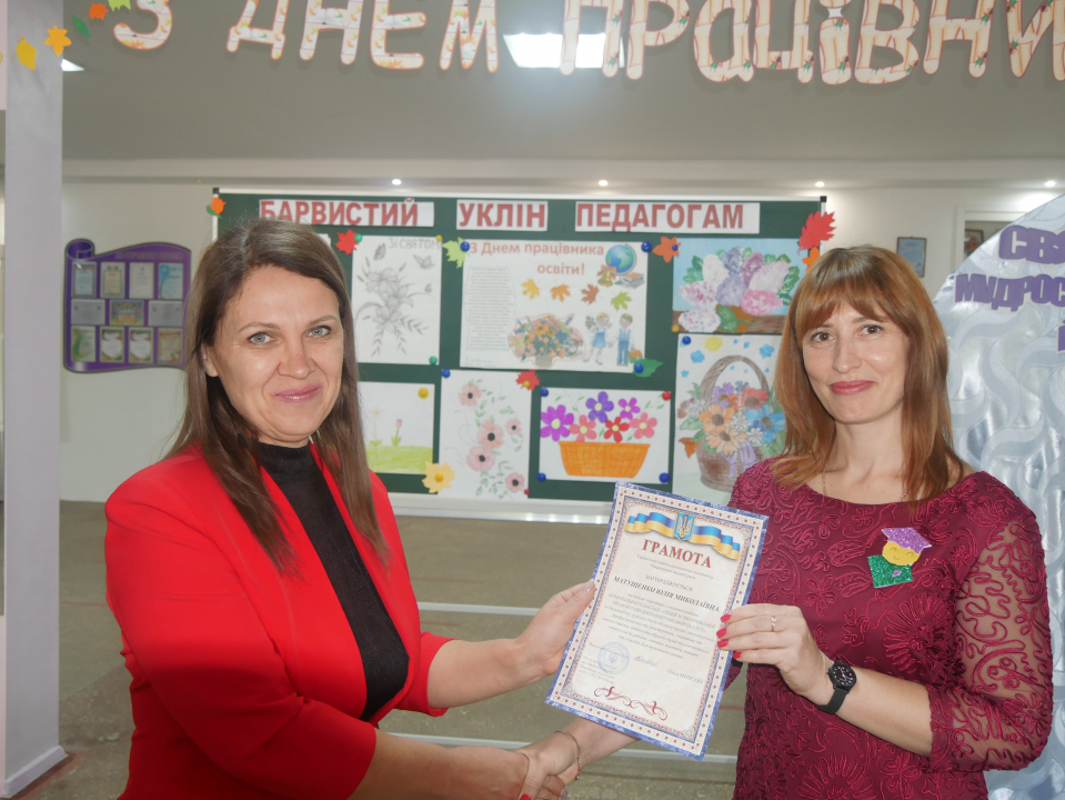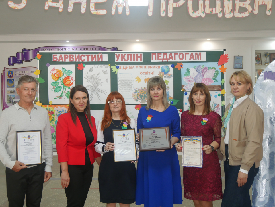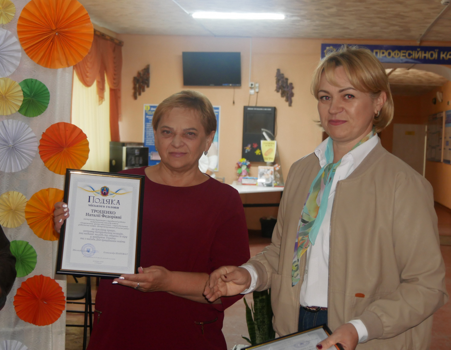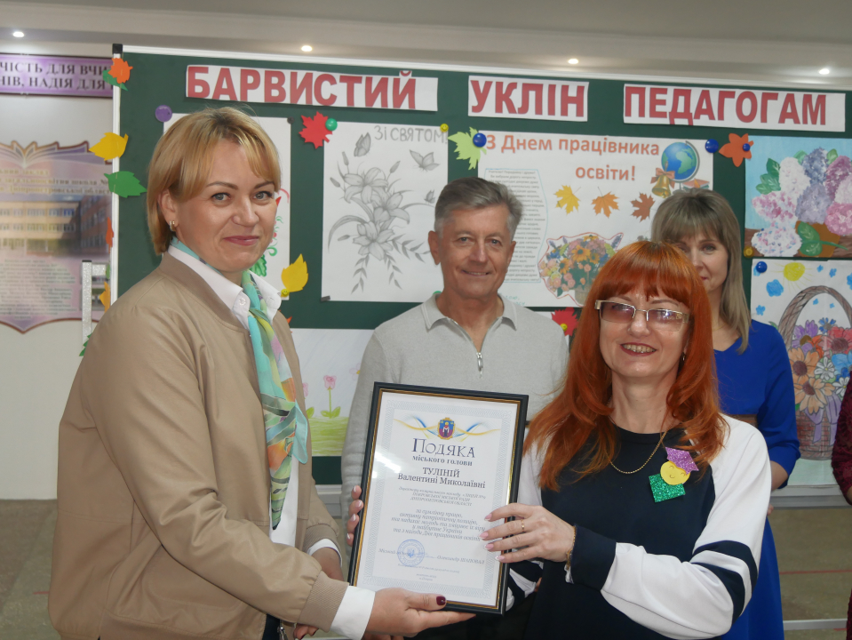 Напередодні професійного свята педагоги нашої громади приймали щирі вітання. За вагомі досягнення й відданість справі вони були відзначені Подяками міського голови Олександра Шаповала, які зі словами вдячності вручила його заступник Ганна Відяєва.