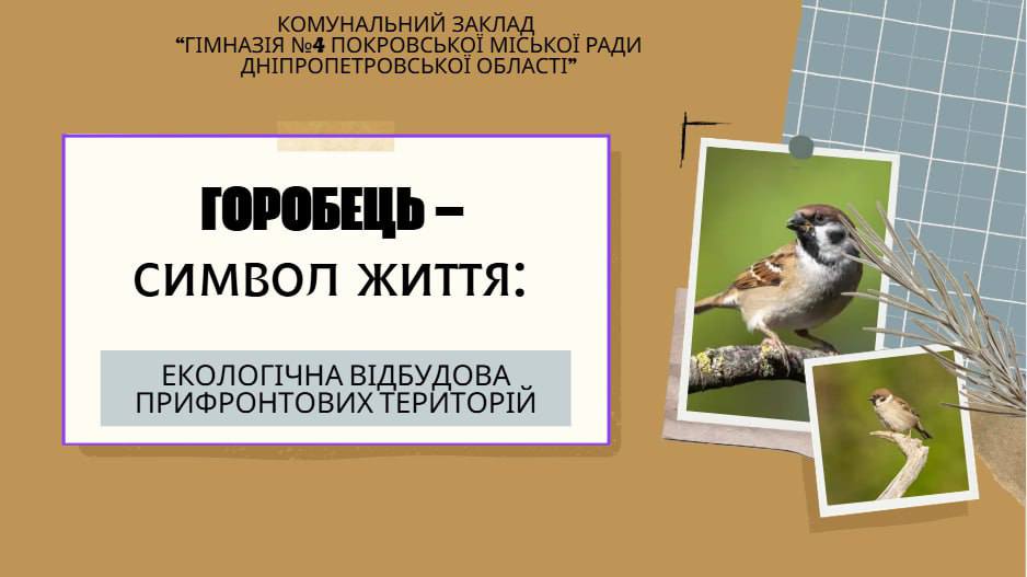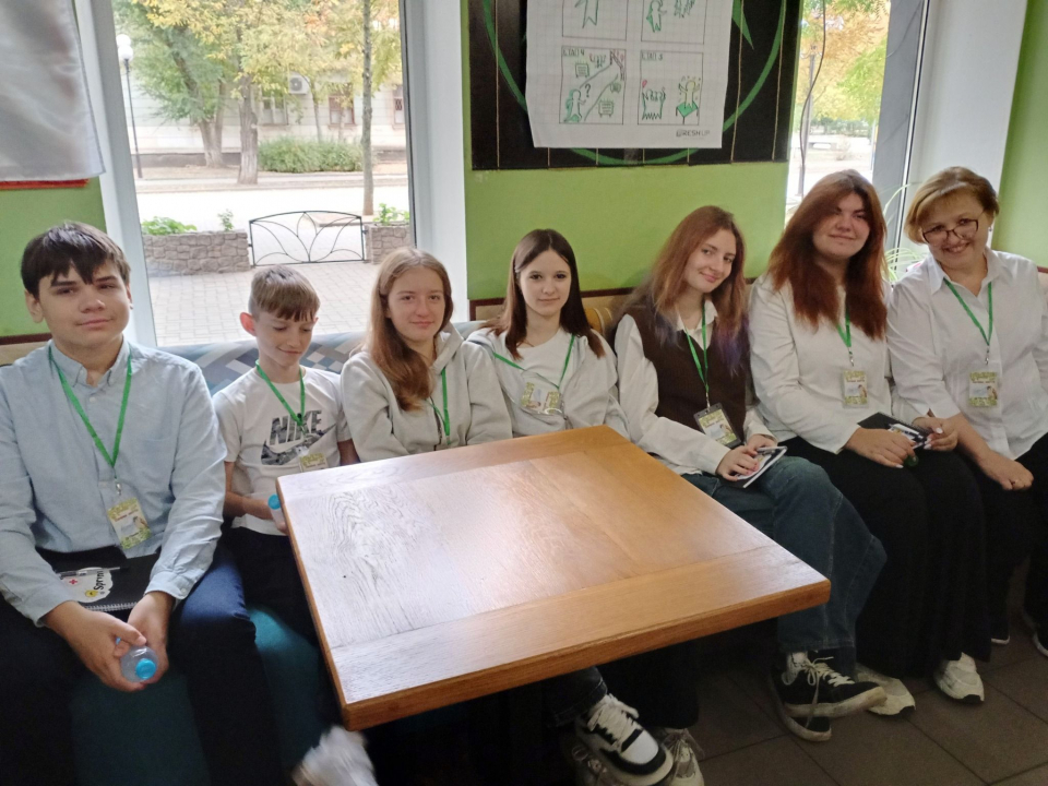 До нашої команди увійшли: Олександр Мисютін, Олена Курпиш, Дар’я Сувид, Софія Брашнець, Артем Іванов та Єлизавета Севастьянова. За підтримки вчителів Олени Сапун та Тетяни Чижик, старшокласники презентувала власний екопроєкт «Горобець — символ життя: екологічна відбудова прифронтових територій». Його мета — зберегти популяцію горобців як частину спільної екосистеми й нагадати: навіть найменший птах може стати великим символом життя, миру та відродження.