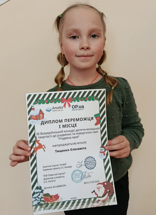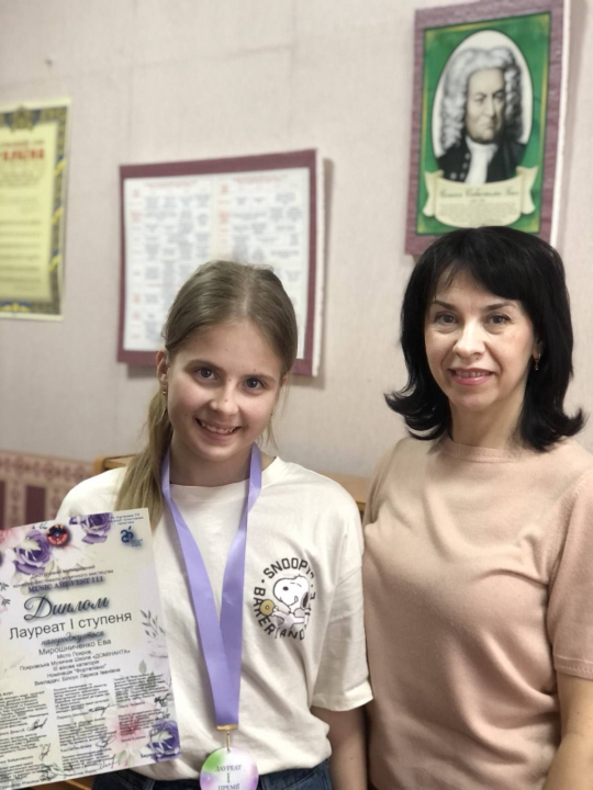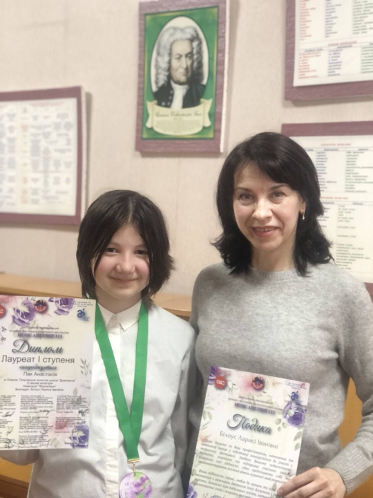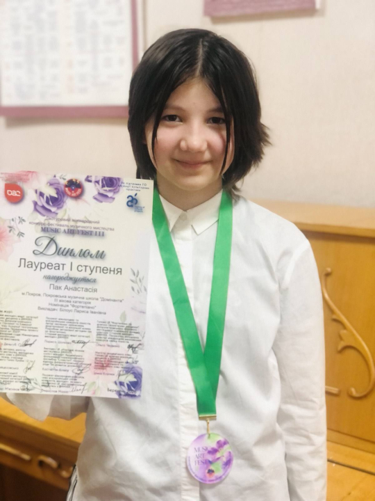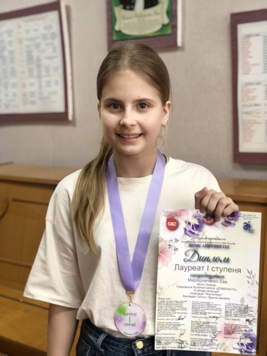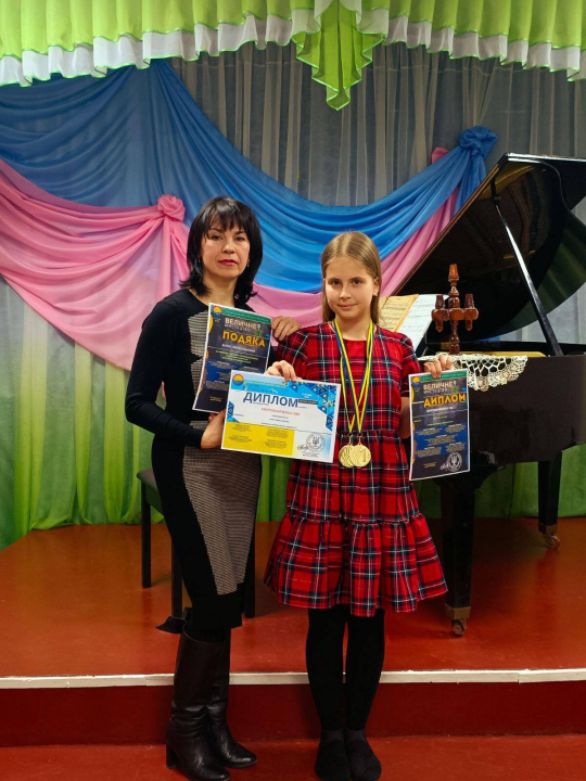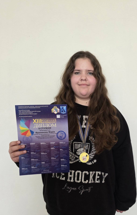 Диплом другого ступеня XIII Всеукраїнського дитячо-юнацького конкурсу "Музичний калейдоскоп" завоювала Марія Фролікова, викладач Дарія Пятуніна.