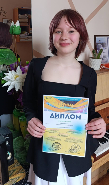 «Золото» IV Міжнародного конкурсу мистецтв "Зірки навколо" додала до скарбниці школи Софія Погоріла, учениця Анастасії Бойко-Костіної.