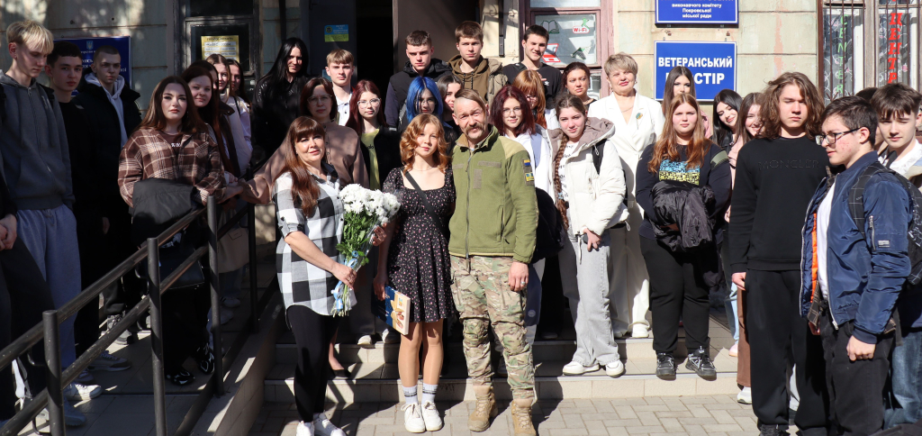 Учні уважно слухали гостя, ставили запитання. Розмова вийшла по-справжньому глибокою, з великою повагою до людського досвіду і до тих, хто сьогодні боронить Україну.