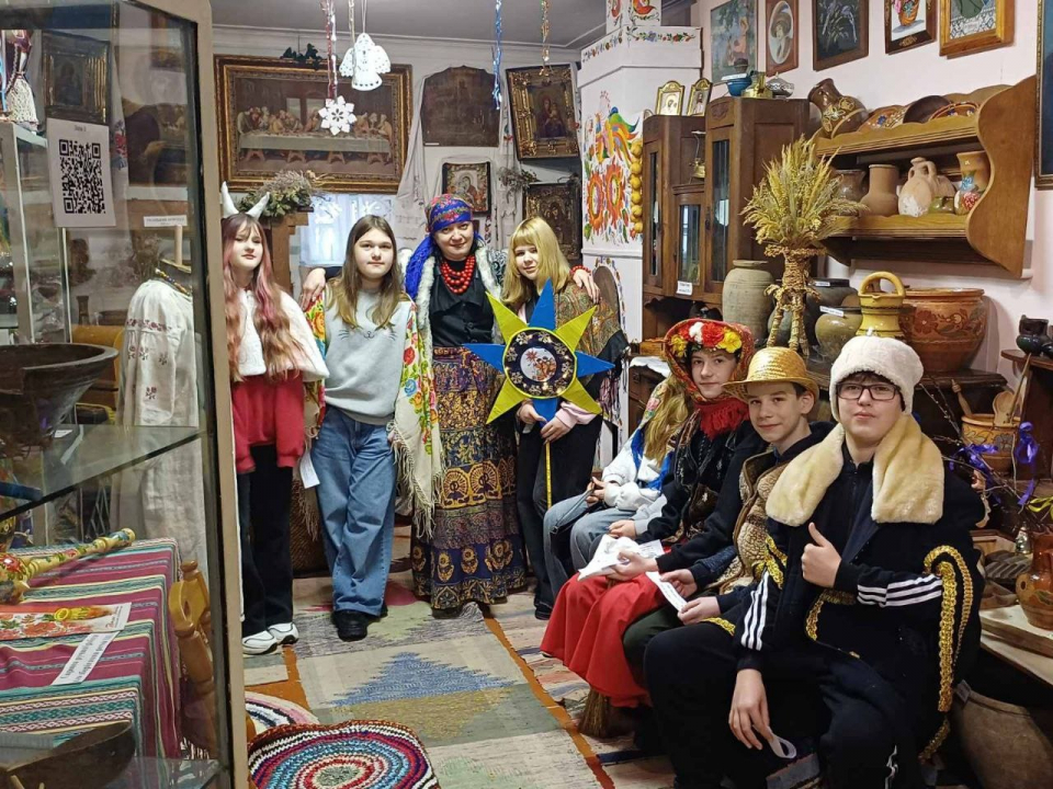У святкові дні музей став простором живої взаємодії. На Святвечір та у день Різдва Христового тут лунали колядки - до музейних залів завітали юні колядники із зірками, щирими усмішками та добрими віншуваннями. Дитячі голоси й різдвяні побажання миру та злагоди створили особливу атмосферу автентичного свята. Не менш теплими були й зустрічі зі школярами - різдвяні бесіди, майстер-класи та аромат духмяних пряників перетворили музейні заняття на щире занурення в українську традицію. А театральне дійство, представлене колективом Шолоховського будинку культури, оживило народні звичаї зимових свят.