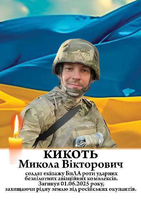 1 червня 2025 року Микола Кикоть загинув, виконуючи бойове завдання поблизу населеного пункту Серебрянка Бахмутського району. Впродовж трьох місяців вважався зниклим безвісти. Захиснику було 34 роки. У Миколи залишилися мама , дружина, син і донька.