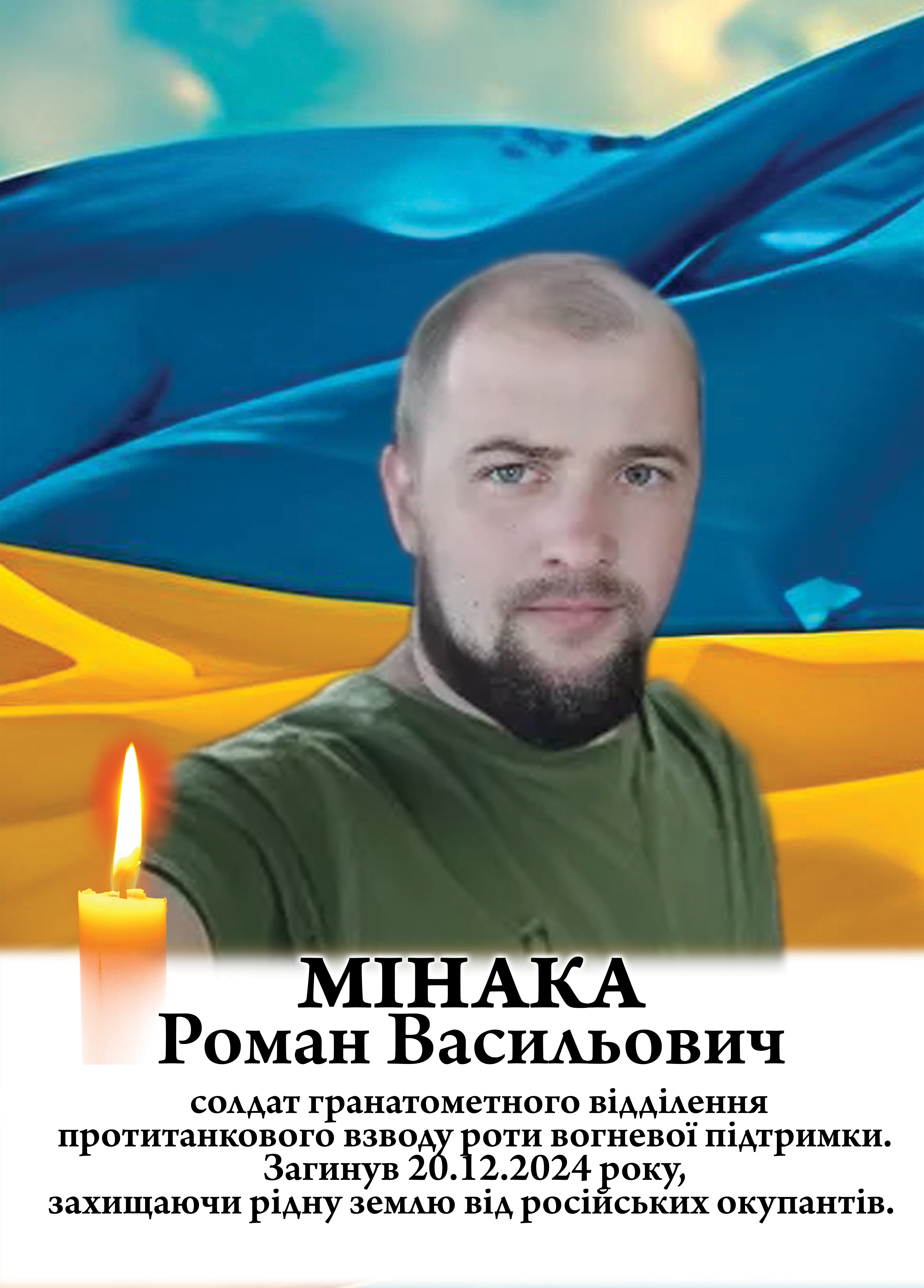 20 грудня 2024 року, під час виконання бойового завдання в районі села Новотроїцьке Покровського району Донецької області, Роман Мінака загинув. Йому було 33 роки. У захисника залишилися мати, дружина та двоє дітей.
