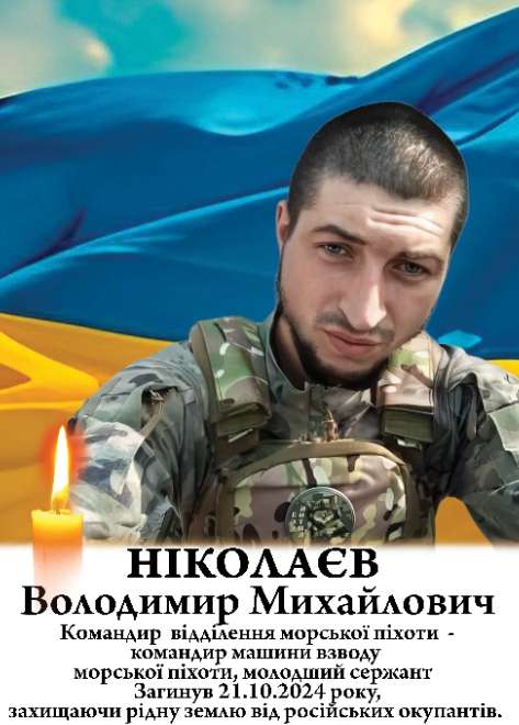 З повномасштабним вторгненням рф Володимир Ніколаєв був призваний на військову службу, став на захист своєї землі. Молодший сержант, командир 2-го відділення морської піхоти з позивним ‘’Ян’’, воював на Донецькому, Покровському напрямках.