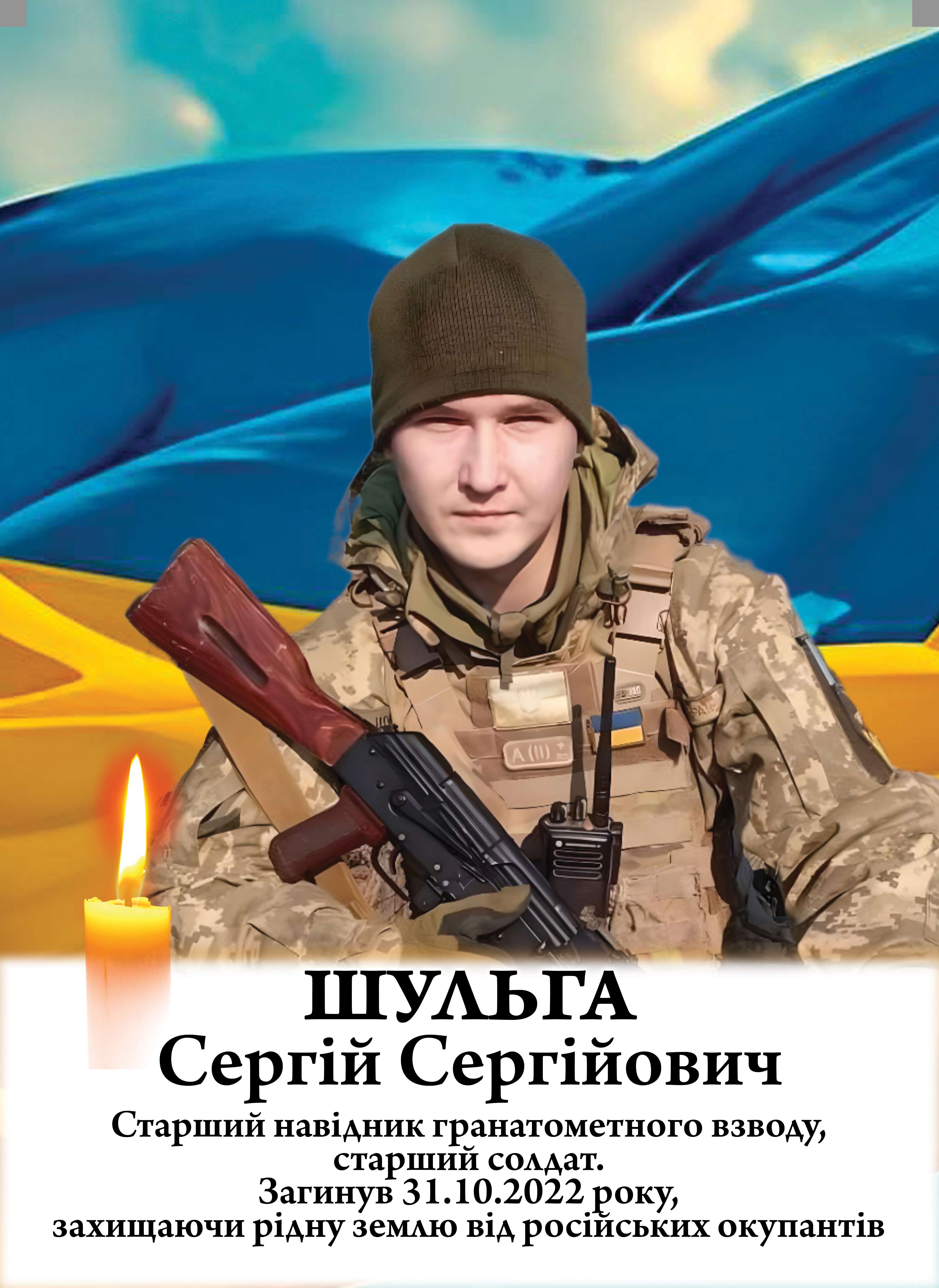 У листопаді 2021 року отримав звання «старший солдат». З початком повномасштабного вторгнення рф, 24 лютого 2022 року, Сергій Шульга одразу продовжив захищати Україну. Брав участь у боях у складі 92-ї бригади, 1-го батальйону, 3-ї штурмової роти. У свої 20 років відзначався мужністю, витримкою і стійкістю.