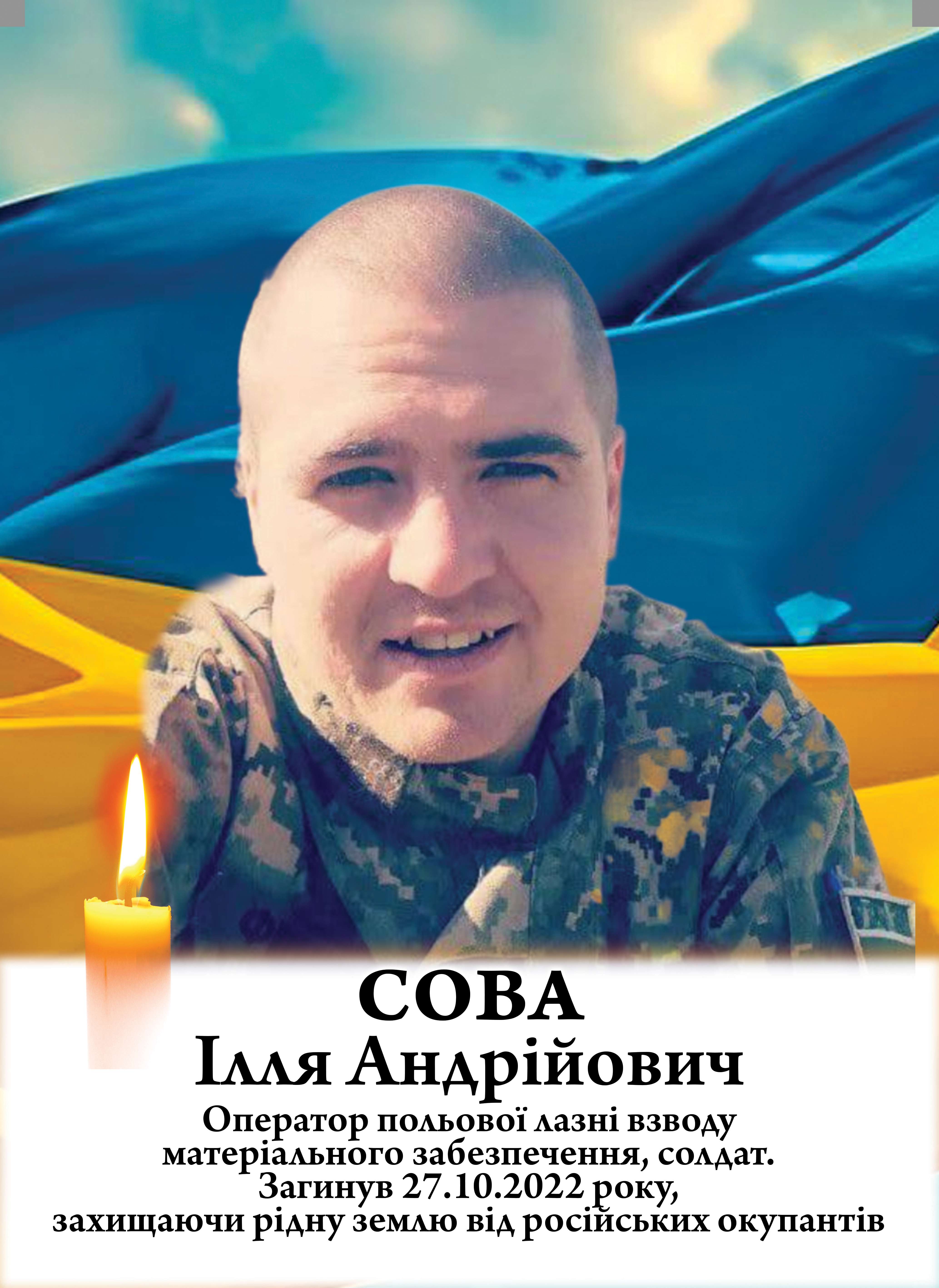 Солдат Ілля Сова загинув 27 жовтня 2022 року поблизу населеного пункту Бересток, що на Донеччині. Йому було 28 років. У воїна залишилися мати, брат.