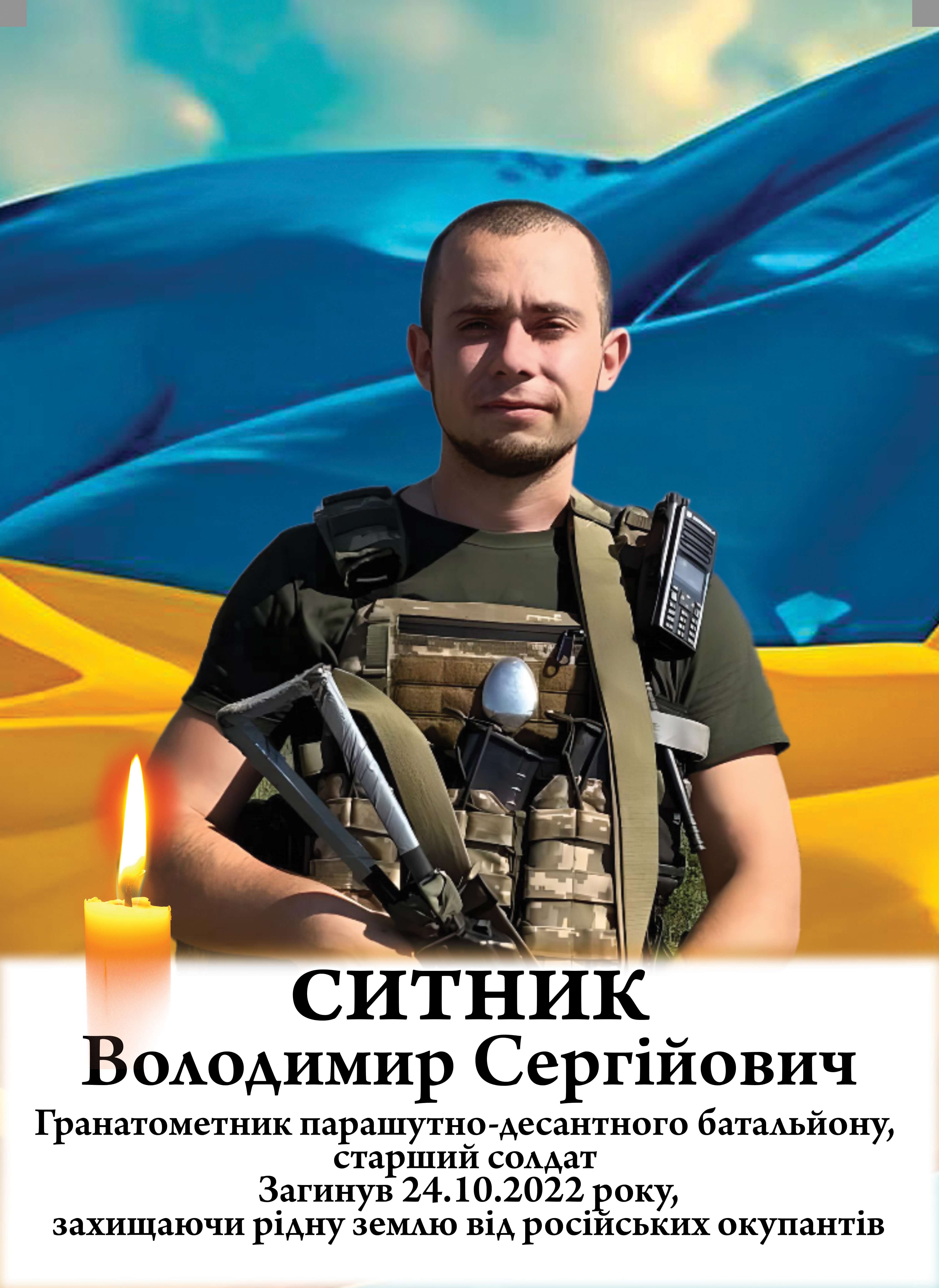 Володимир Ситник загинув 24 жовтня 2022 року під час виконання бойового завдання поблизу населеного пункту Терни на Донеччині, виявивши мужність, стійкість і відданість присязі. Йому було 23 роки. Залишилися батьки та сестра.