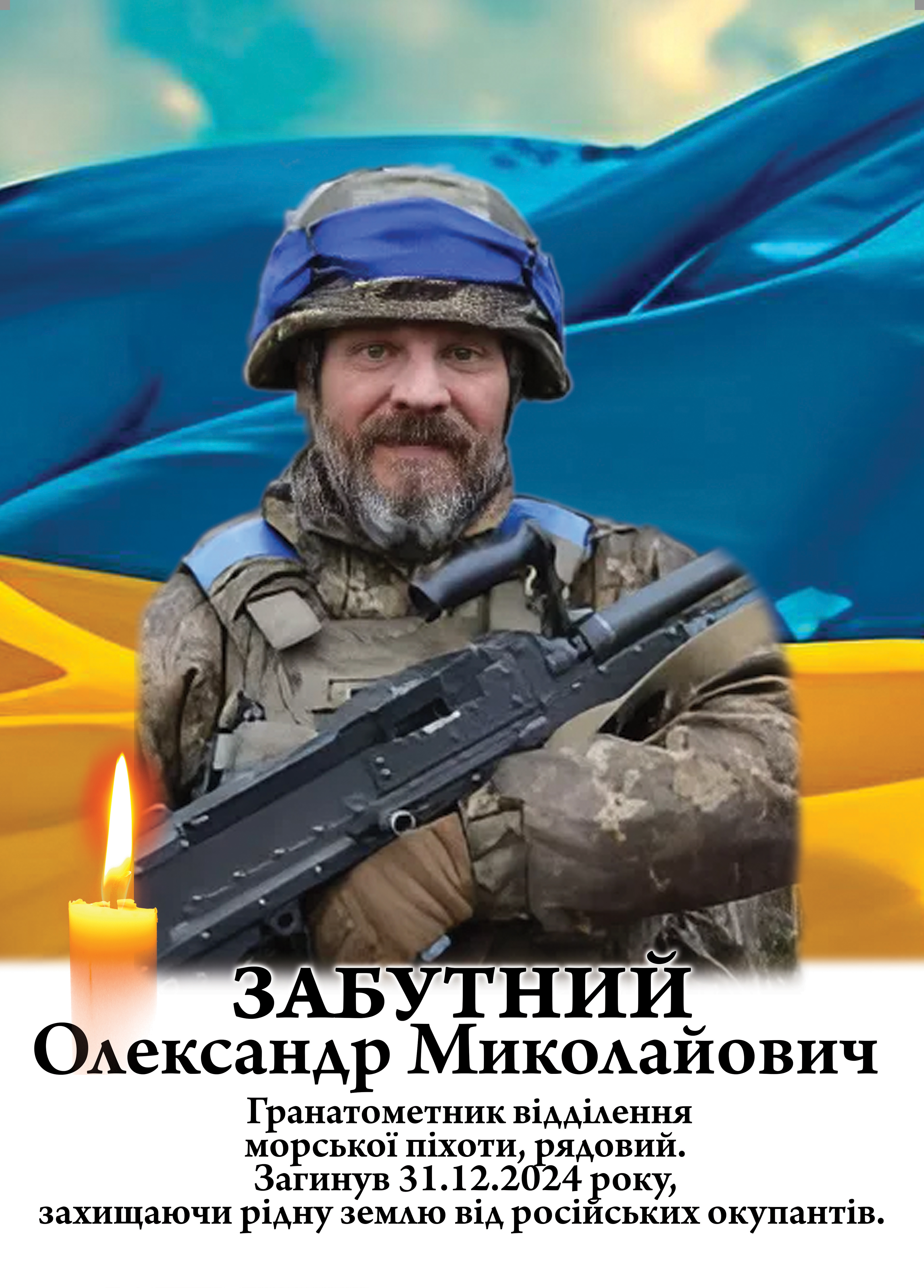 Олександр Забутний загинув 31 грудня 2024 року під час оборонних дій поблизу населеного пункту Леонідове (рф), виявивши стійкість, мужність і відданість присязі. Воїну було 44 роки, в нього залишилися два сини, батьки.